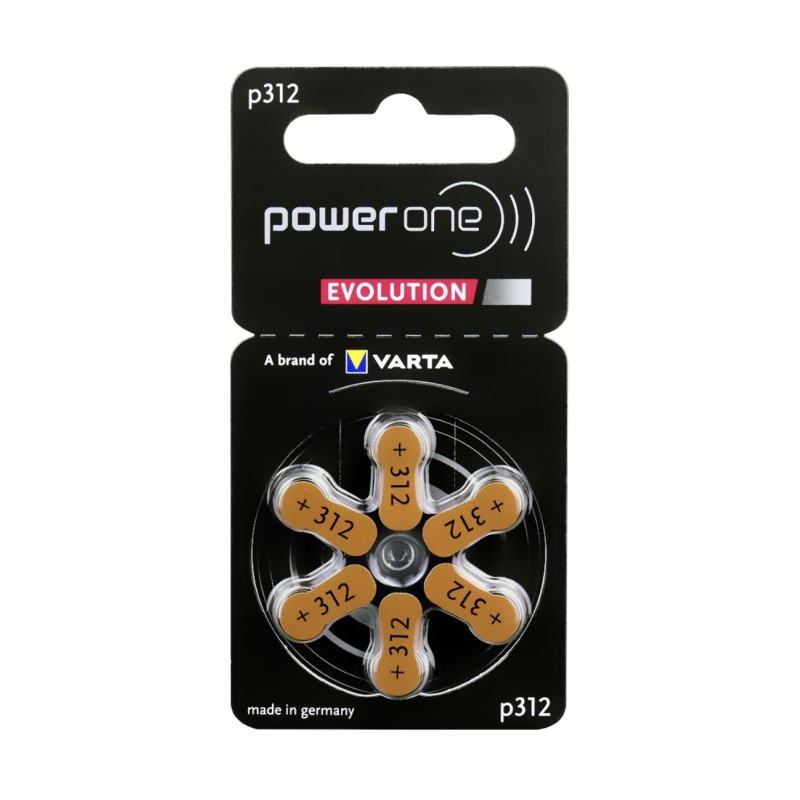 1 confezione di pile 1,45V zinco-aria PR41 Varta Powerone evolution mod. 312 (confezione di 6 pz).